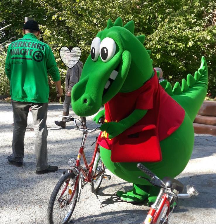 Bautzen, 29.09.2018 Gerade in der dunklen Jahreszeit ist es wichtig, ausreichend Beleuchtung am Fahrrad angebracht zu haben. Das weiss auch das Parkmasskottchen des Saurierparks Bautzen. Deshalb lud er die Verkehrswacht Bautzen e.V. am 29.09. 2018 zu sich in den Park ein.